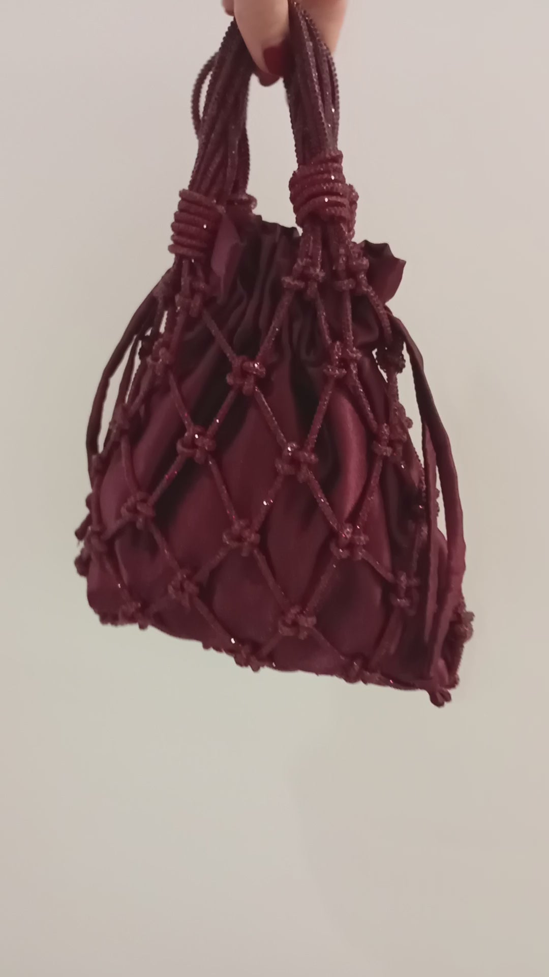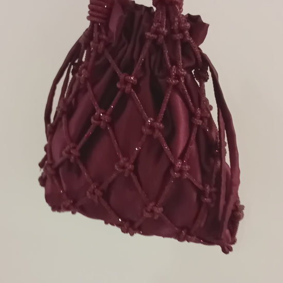 Add a touch of light and originality to your look with this unique bag, handmade with a fine cord studded with gold-colored rhinestones. Each single knot is made with the traditional macramé technique, which makes this bag a true artisanal masterpiece.