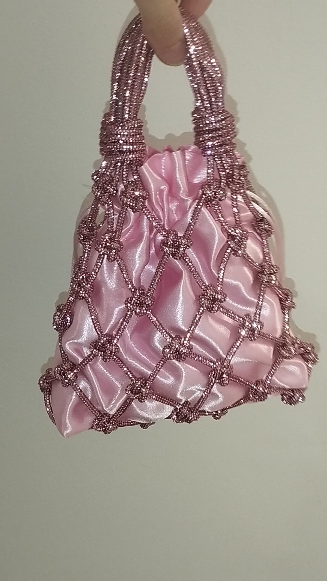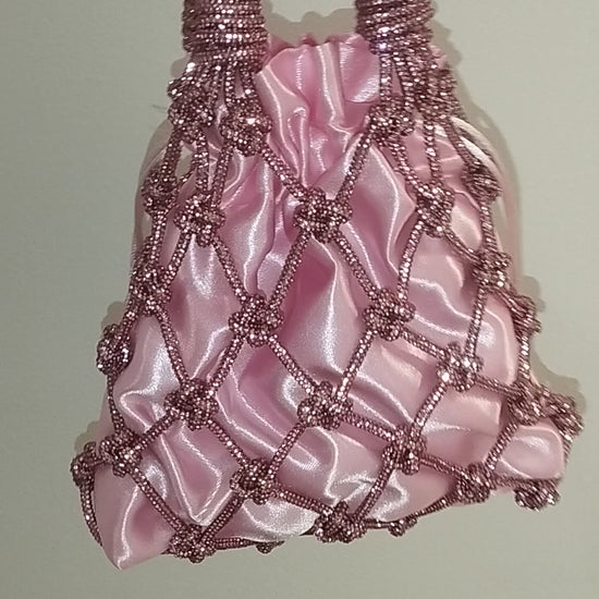 Ajoutez une touche d'éclat et d'originalité à votre look avec ce sac unique, réalisé à la main avec un cordon fin parsemé de strass couleur or. Chaque nœud est réalisé avec la technique traditionnelle du macramé, ce qui fait de ce sac un véritable chef-d'œuvre artisanal.